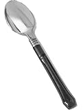 20 cuilleres jetables en plastique - couleur argent, facon metal - manche noir